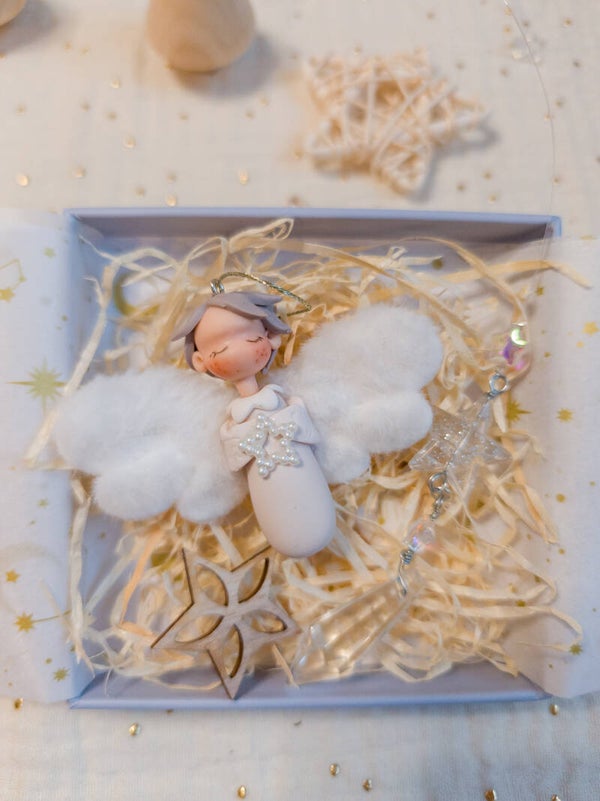 Chaque Ange porte une petite étoile perlée, symbole de protection, de douceur et de lumière intétieure.